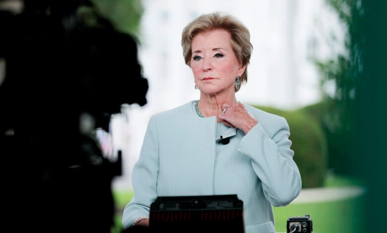 Linda McMahon prepares to do a live TV interview with Fox News outside of the White House on July 15, 2025 in Washington, DC. The Department of Education quietly announced that student loan forgiveness under the IBR plan has been paused. (Photo by Anna Moneymaker/Getty Images)Less