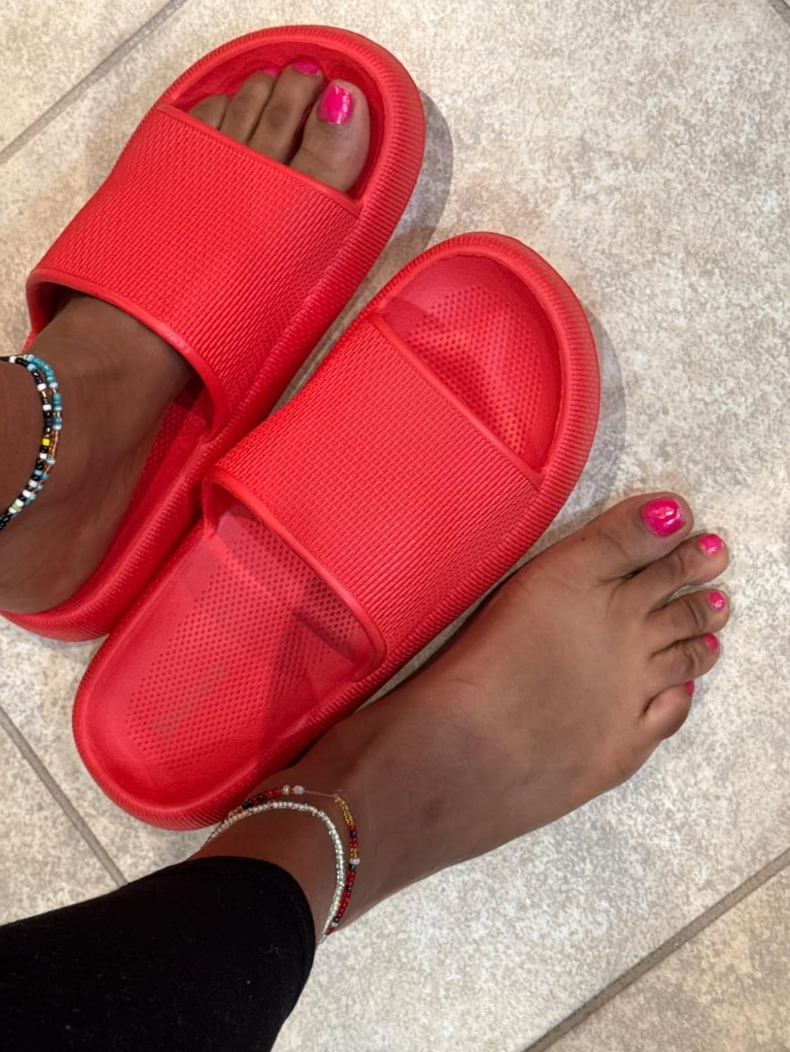13. A pair of lightweight, entirely waterproof cloud pillow slippers for anyone whose feet are pretty little princesses who need to be pampered at all times. These are near weightless, but have a cushioned, thick sole that absorbs impact on hard floors and surfaces. Reviewers with arthritis and plantar fasciitis also swear by these for alleviating foot pain!