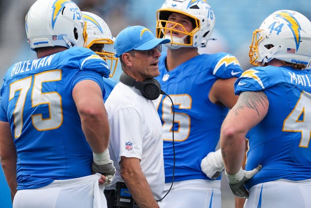 Head coach Jim Harbaugh has his Chargers off to a 2-0 start, with a date against the Steelers in Week 3.