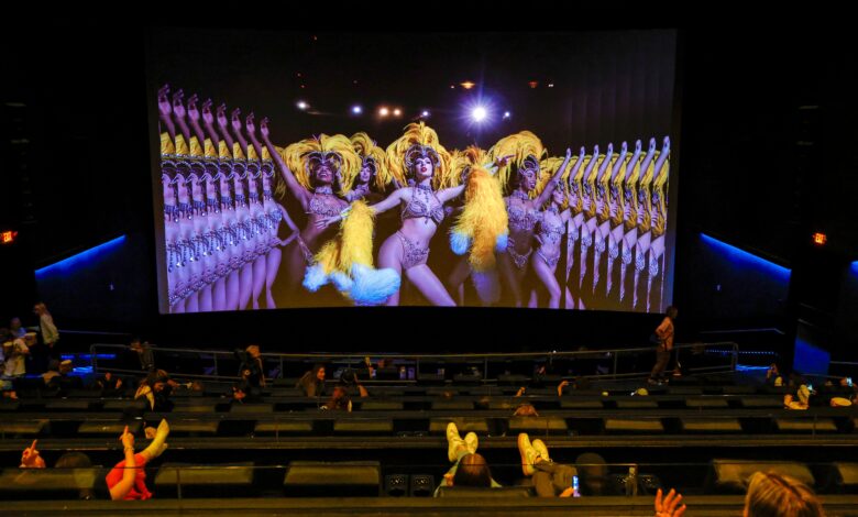 Inside the theatre at a screening of “Taylor Swift: The Official Release Party Of A Showgirl.”