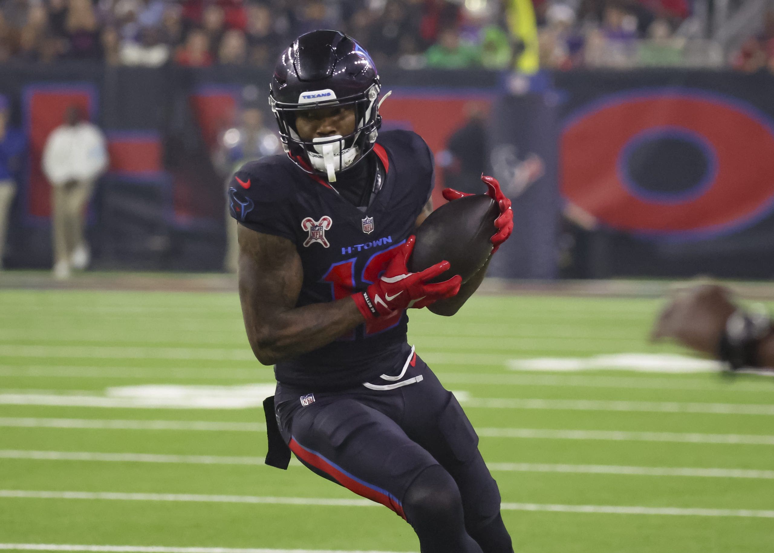 Houston Texans wide receiver Nico Collins (12) completes a catch in the third quarter during the NFL game between the Baltimore Ravens and Houston Texans on December 25, 2024 at NRG Stadium in Houston, Texas. (Photo by Leslie Plaza Johnson/Icon Sportswire via Getty Images)