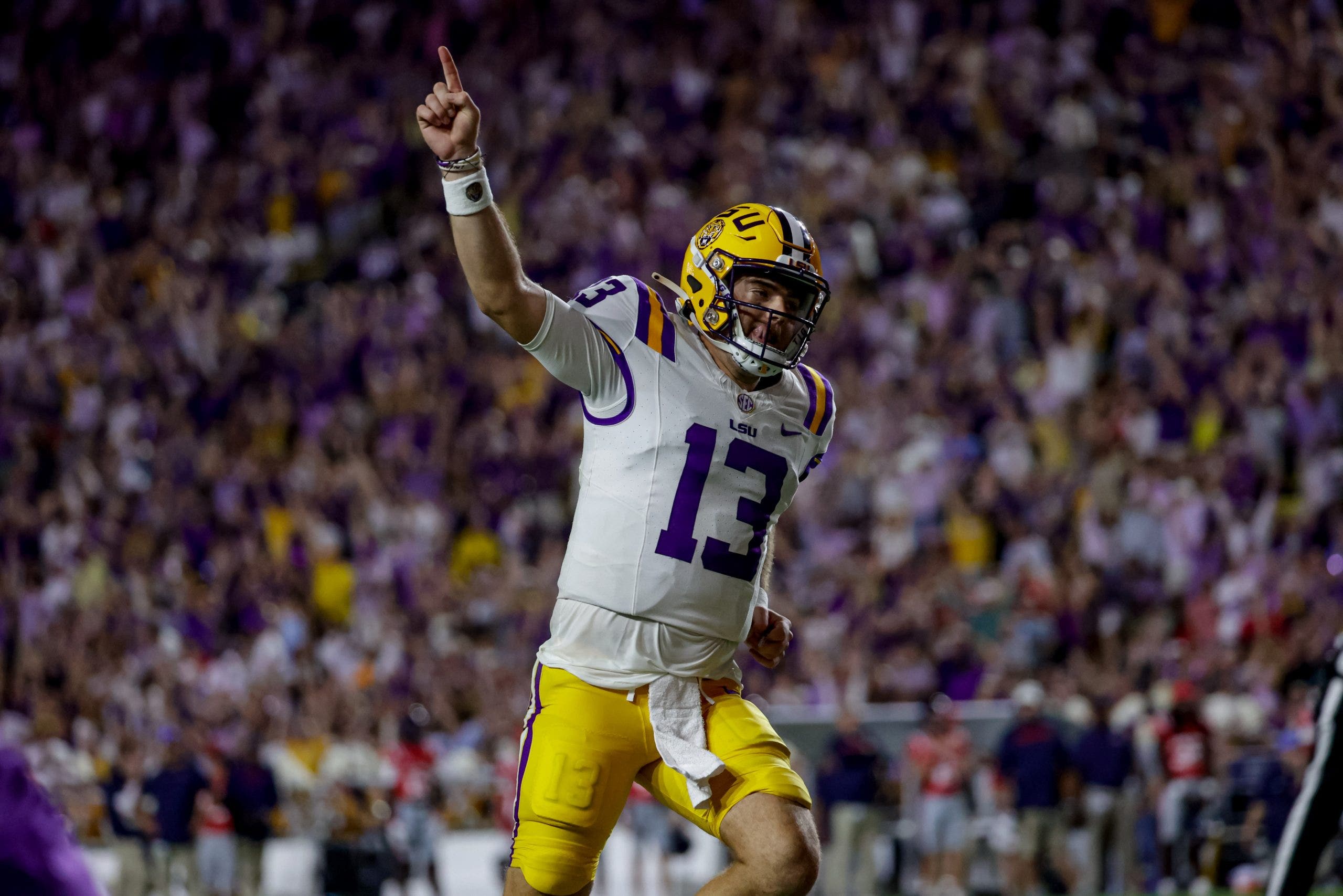 LSU QB Garrett Nussmeier completed fewer than 50% of his passes against Ole Miss, but he had 337 passing yards and three touchdowns in the win.
